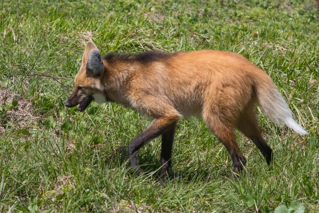 The Maned Wolf is a solitary animal with a large range and is found only in northern parts of South America, such as Brazil, Eastern Bolivia and Northern Argentina. We have seen this ‘Near Threatened’ species at our reserve on several occasions but it seems to prefer dry conditions so when we are in wetland status they are not usually seen. It is the largest canid of South America and is the only species in the genus ‘Chrysocyon’. It can occasionally be heard, or less often sighted, in the Esteros del Iberá. It is listed as Near Threatened in the IUCN redlist although Brazil lists it as Vulnerable. It is nocturnal, has no natural predators (other than possibly the Jaguar) and preys on small mammals. Its omnivorous diet includes fruit as a major part, usually in the form of Solanum lycocarpum. In Argentina it is known as Aguará guazú.