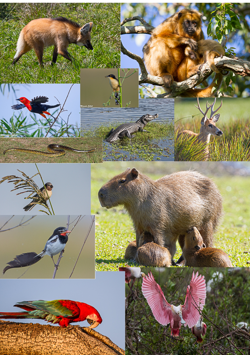 Endangered birds include the (EN) Ibera Seedeater, the (VU) Strange Tailed Tyrant, the (VU) Black & white Monjita,the (VU) Ochre breasted pippit, 2 other Sporophila seedeaters (CR, NT), the Yellow cardinal (EN) and the Saffron Cowled Blackbird (VU).*